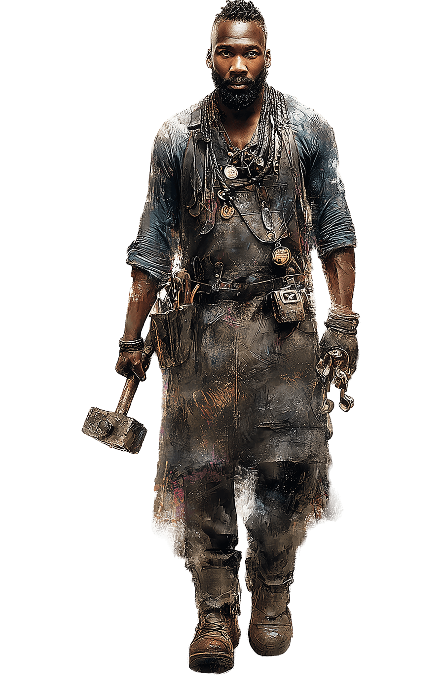 La Confrérie des Forges Célestes rassemble les artisans et ingénieurs les plus talentueux du Dominion, véritables gardiens du savoir technique rescapé de l’ancien monde, transmis à travers des schémas jaunis et des mémoires fragmentaires.